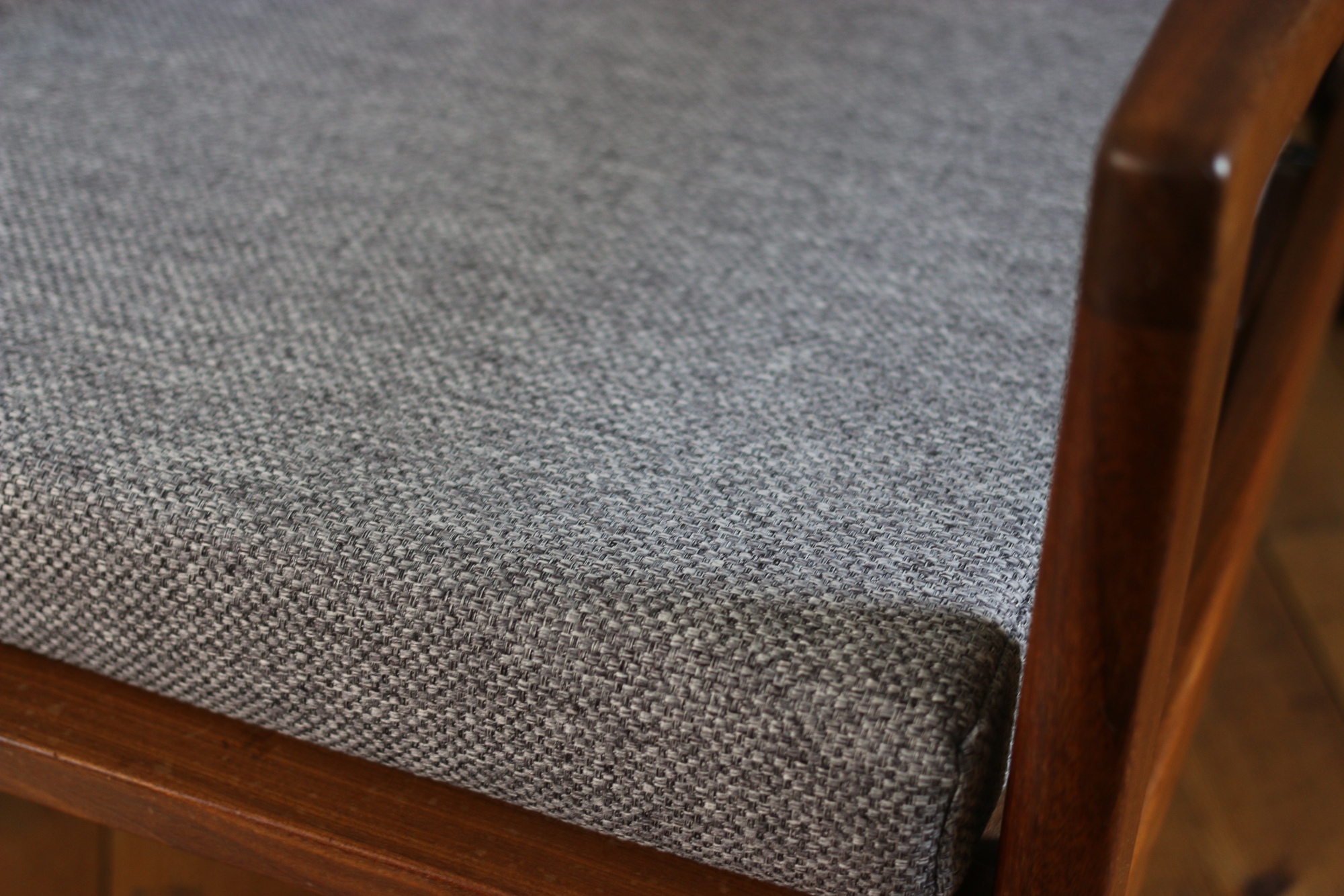 Fauteuil scandinave teck vintage 1960 Fauteuil scandinave vintage en teck des années 60 vendu chez Roche Bobois à l'époqueen très bon état sanglage et coussins (mousse tissu) refait à neuf par un tapissierdimensions : hauteur 67 cm x largeur 76 cm x profondeur 76 cm x hauteur d'assise 38 cm900 €
