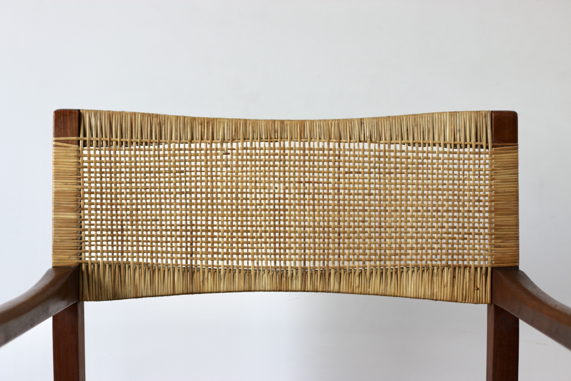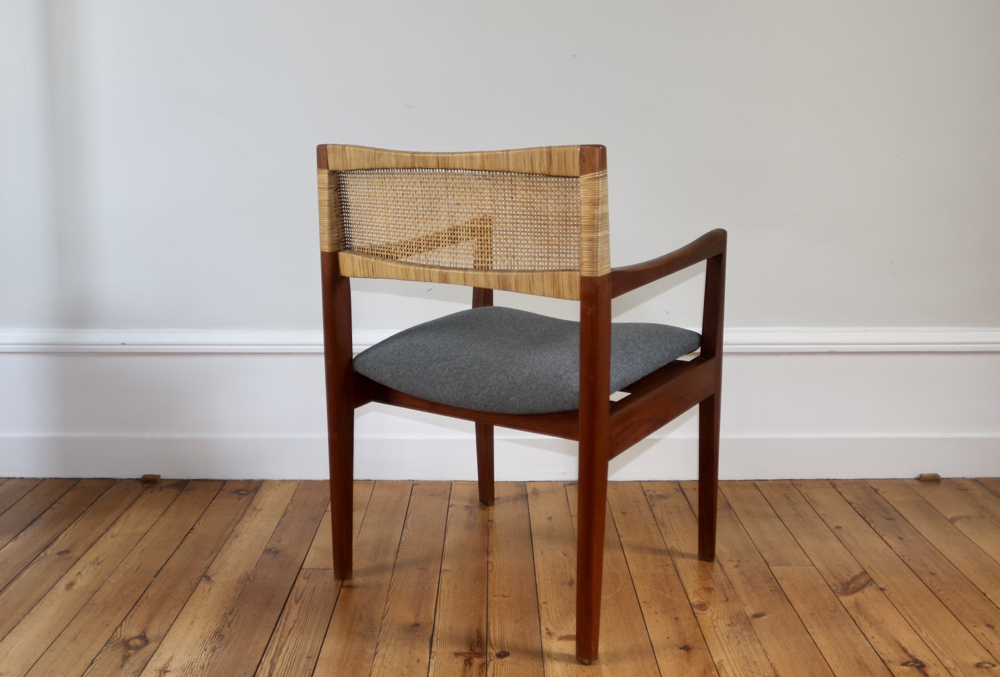 Fauteuil scandinave vintage teck et rotin, 1960 Fauteuil scandinave vintage en teck et rotin des années 60 en très bon état assise refaite par un tapissier en tissu touché laine gris a seul à noter un éclat sur une traverse (voir photo) dimensions : hauteur 81 cm x largeur 76 cm x profondeur 76 cm x hauteur d'assise 38 cm470 €