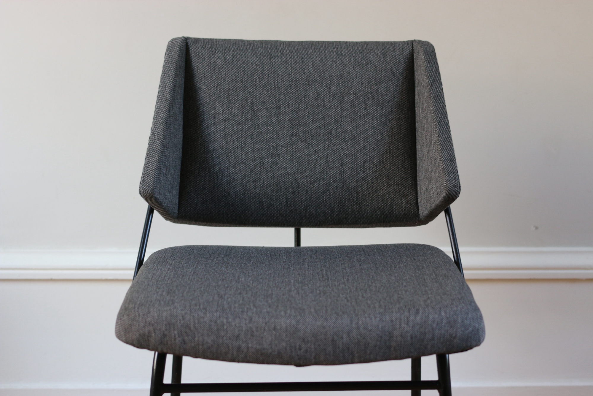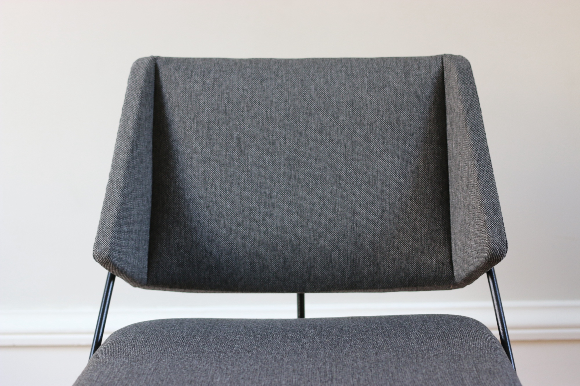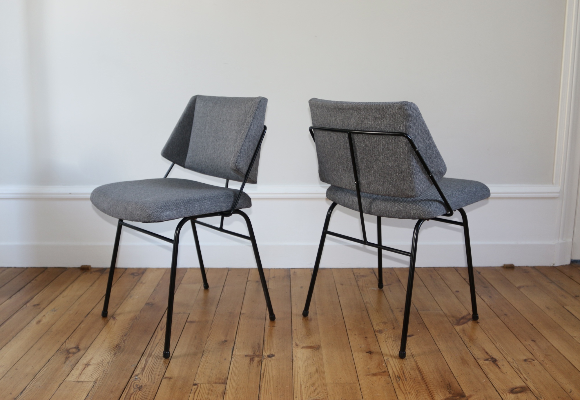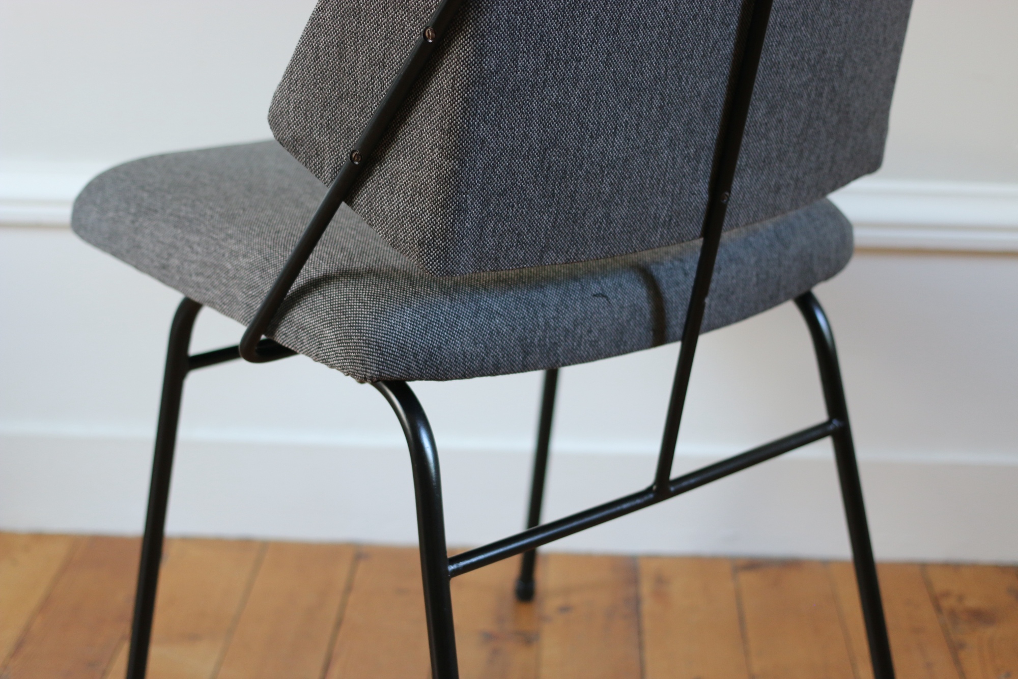 Série de 6 chaises modernistes vintage Raphael Raffel, 1950 Rare série de 6 chaises modernistes Raphael Raffel des années 50 distribuée chez Roche Bobois à l'époquerefaites par un tapissier (tissu, sanglage et mousse)Dimensions : hauteur 74 cm x largeur 45 cm x profondeur 45 cm x hauteur d'assise 46 cm2500 €