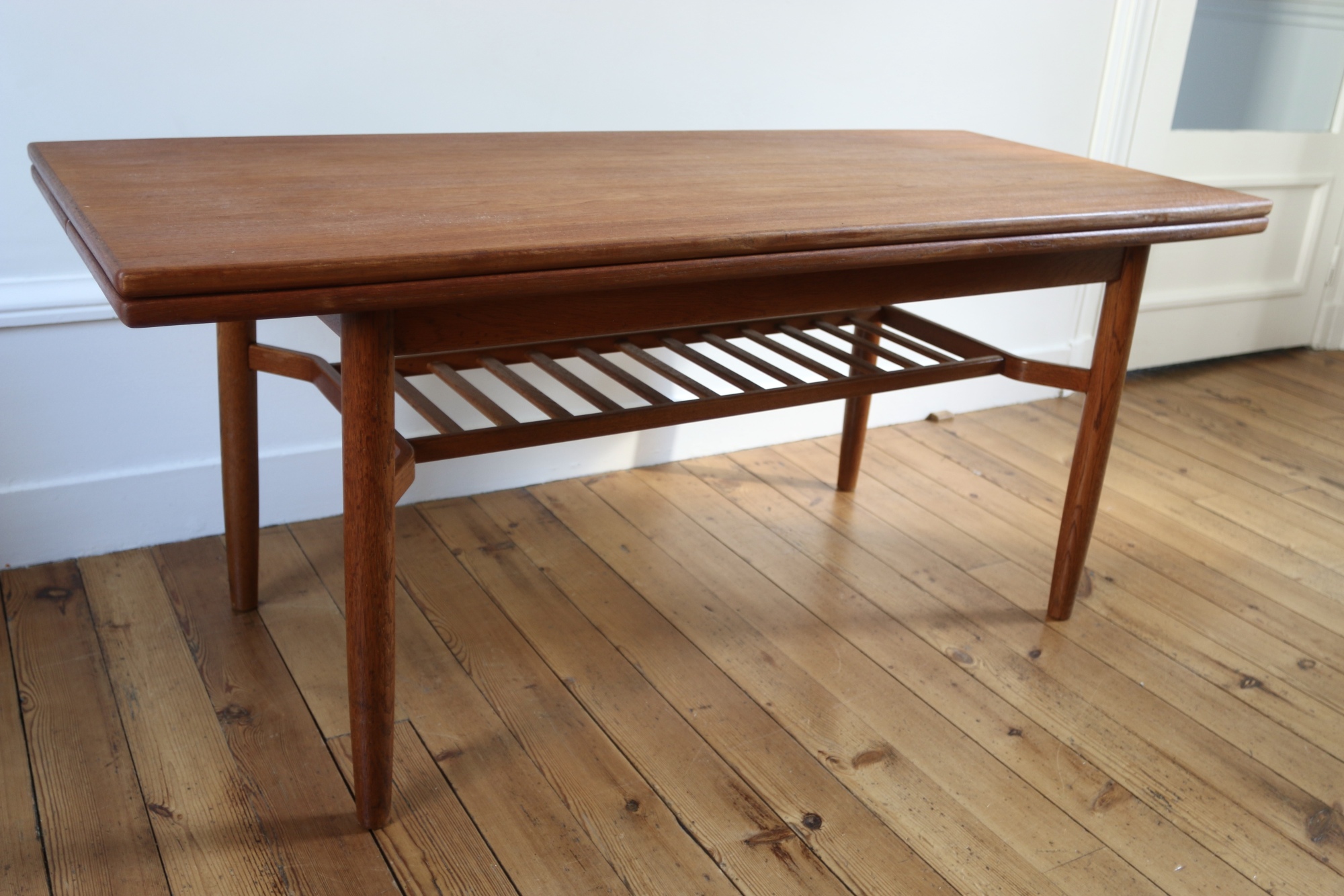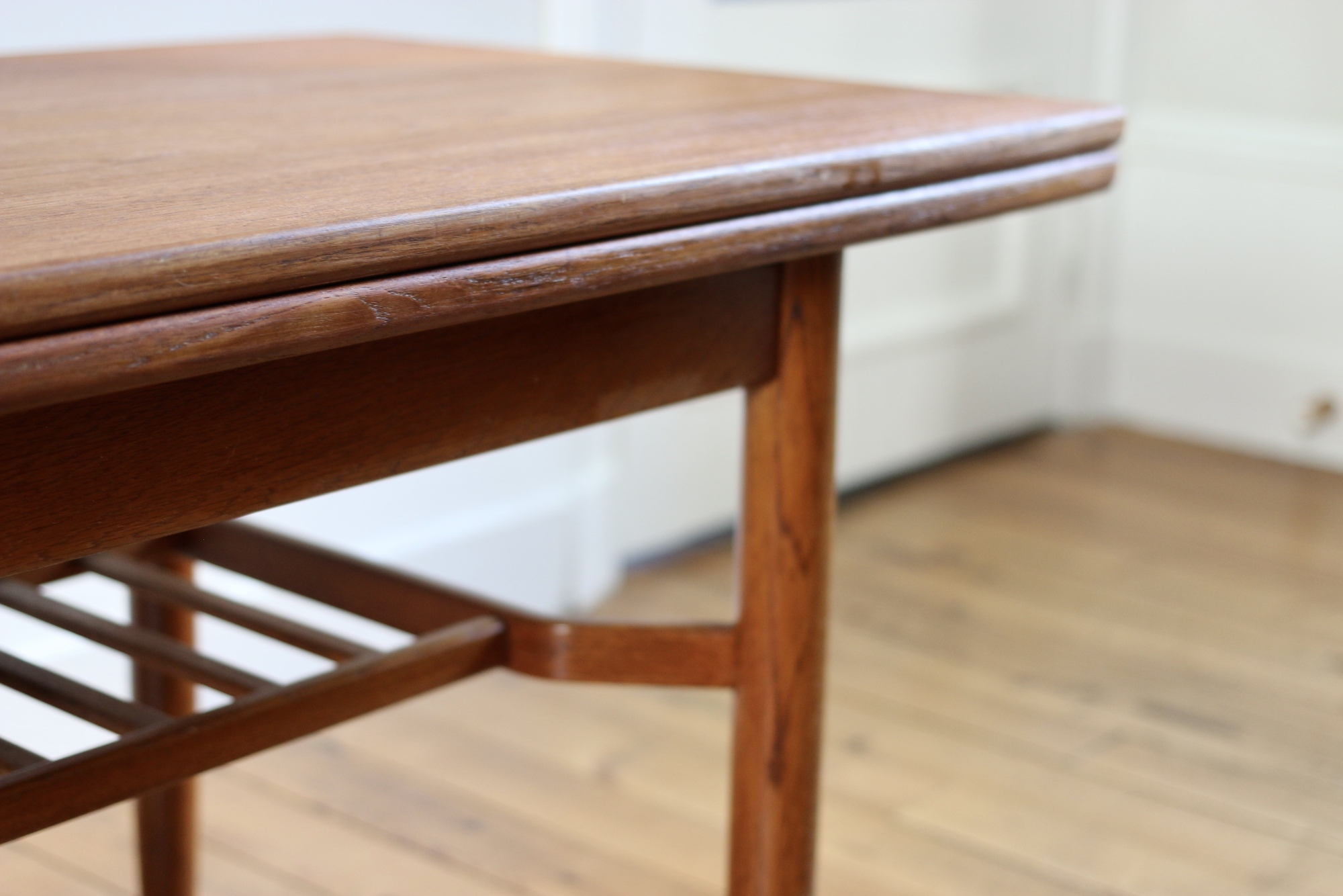 Table basse "elevator" relevable scandinave teck 1960 Table basse scandinave en teck transformable en table haute, idéale pour les petits espacesElle devient table de repas en deux mouvementsmodèle Sesam de Tingstroms, made in Swedenen très bon étatdimensions table basse : longueur 130 cm x largeur 56 cm x hauteur 55 cmdimensions table haute : longueur 130 x largeur 110 cm x hauteur 73 cm900 €